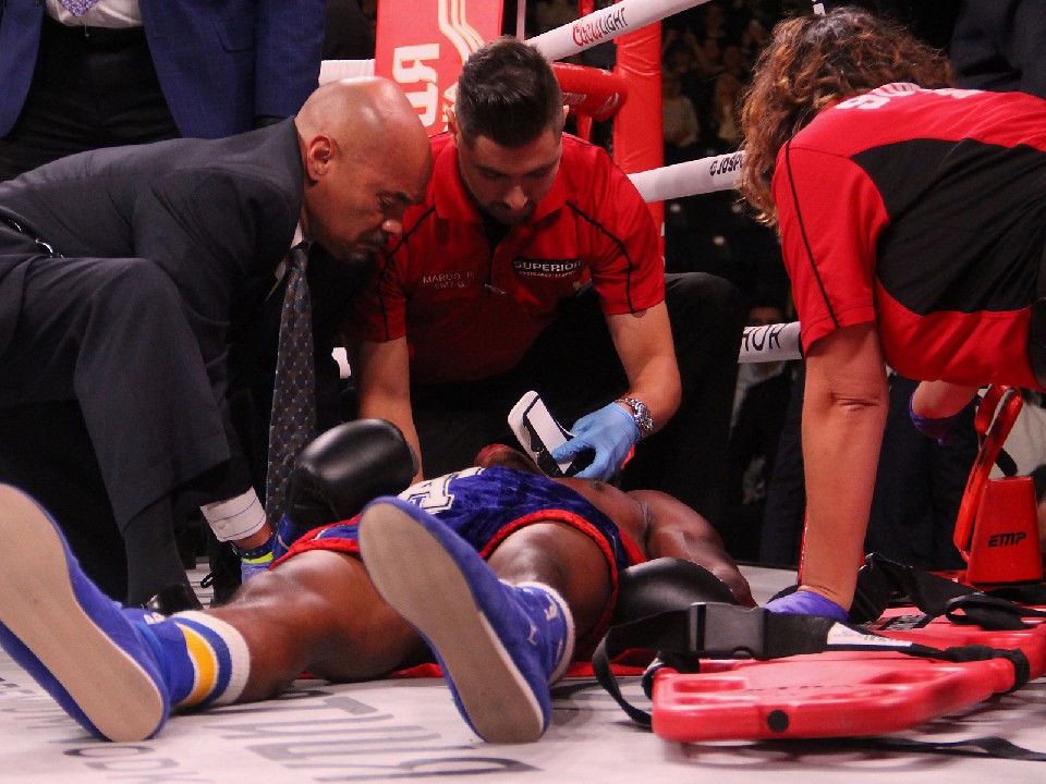 米報道によると、デイはリオデジャネイロ五輪代表のチャールズ・コンウェル(米)とのスーパーウェルター級10回戦で最終10回に左フックで痛烈なダウンを喫し、その際に後頭部をキャンバスに打ちつけ担架で運び出された模様。けいれん発作も起こしたデイはすでに手術が行われたが、昏睡状態にあるという。