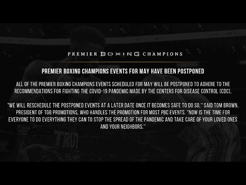 「延期されたイベントは安全に活動ができるようになり次第、再度スケジュールを決める」とPBCを取り仕切るTGBプロモーションズのトム・ブラウン氏が伝えた。
