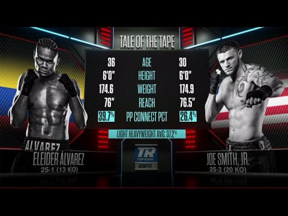 後方からストレートを打ち込むアルバレスに対して、ワイルドなパンチを振るうスミス。強引にパンチを振り抜くスミスがペースを掴み始めた中盤、アルバレスは慎重に様子を伺う時間帯が増え手数が減っていった。ともに消耗を見せてきた終盤だったが、迎えた9回、スミスが右ストレートをアゴに撃ち込むとアルバレスがロープに後退。追撃の左ジャブでエプロン外に頭が投げ出され激しく倒れると、なんとか立ち上がろうとするアルバレスをレフェリーがストップ。スミスが9回26秒TKO勝利となった。