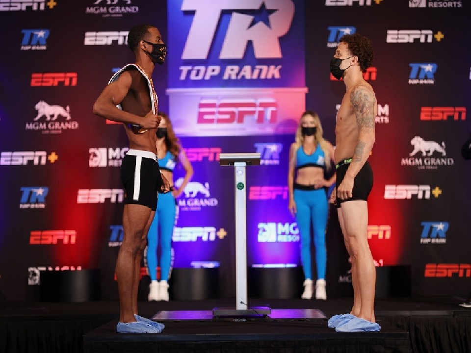 米国・ラスベガスのMGMグランド・カンファレンスセンターで5日(日本時間6日)に開催される、WBO(世界ボクシング評議会)スーパーフェザー級タイトルマッチ。その前日計量が4日に行われ、新型コロナウイルス陽性により2度の延期となった王者ジャメル・ヘリング(34=米)が、同級12位ジョナタン・オケンド(37=プエルトリコ)を相手に2度目の防衛戦に挑む。