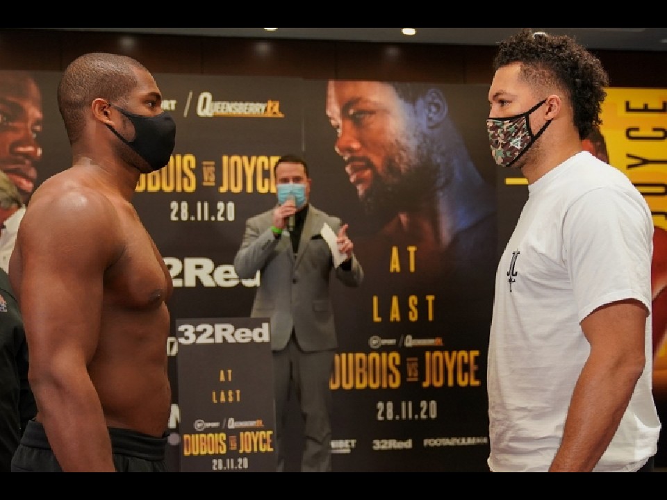 WBOインターナショナルタイトルをはじめ、英国、英連邦、欧州と4つのベルトが懸けられたヘビー級12回戦。デュボアは111.1kgをマーク。対するジョイスは6.3kgデュボアよりも重い117.4kgを記録した。