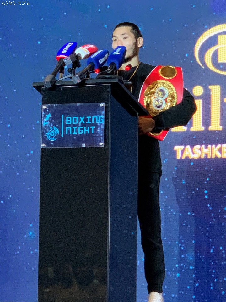 チャンピオンのムロジュンは「ウズベキスタンで出来て嬉しいです。頑張ります」と意気込みを語った。