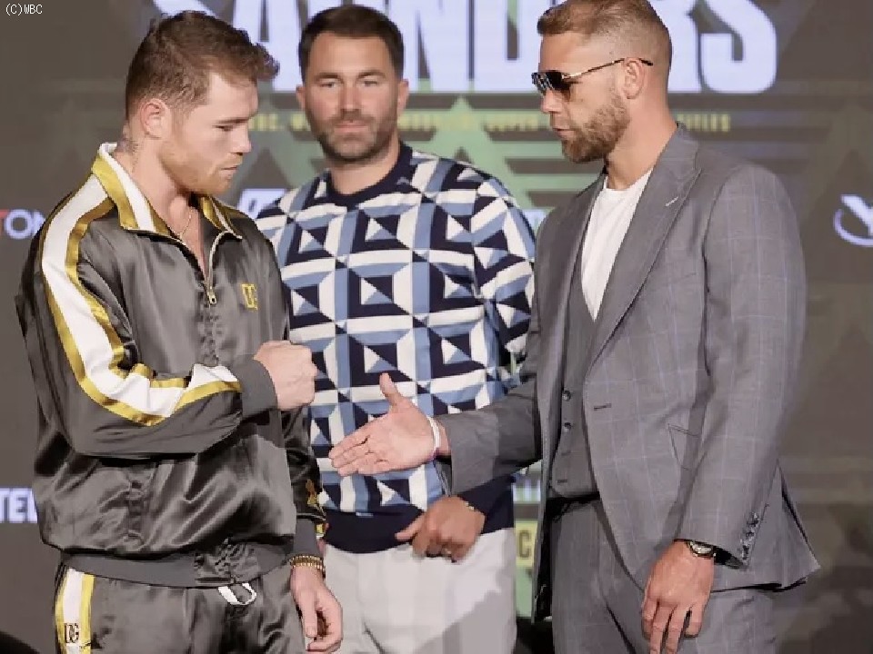 WBC・WBO世界スーパーミドル級王座統一戦で対戦するサウル・カネロ・アルバレス(30=メキシコ)とビリー・ジョー・サンダース(31=英国)が日本時間の7日、米国テキサス州で顔を合わせた。