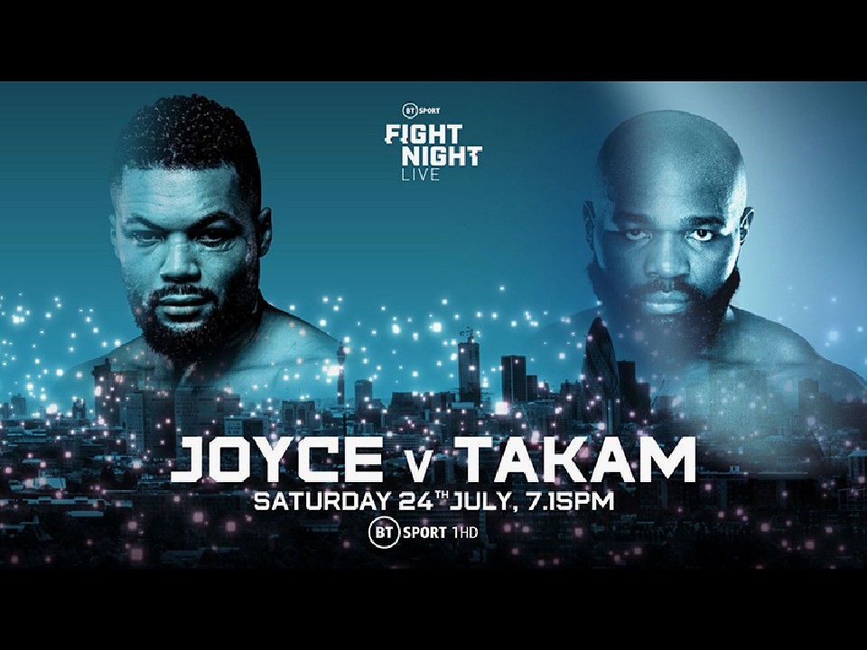 ジョイスは昨年11月に行ったダニエル・デュボア(23=英)との全勝対決で、大方の予想を覆し10回TKO勝利を飾った以来の試合となる。対するタカムは17年6月にアンソニー・ジョシュア(31=英国)、18年7月のデレック・チゾラ(37=英国)と連敗を喫するも、その後は4連勝で今回のサバイバル戦につなげた。