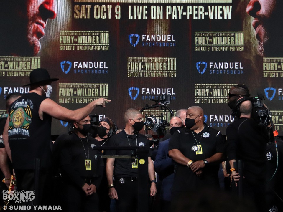 米国・ネバダ州ラスベガスのT-モバイルアリーナで9日(日本時間10日)に開催される、WBC(世界ボクシング評議会)ヘビー級タイトルマッチ。王者タイソン・フューリー(33=英)vs同級1位デオンタイ・ワイルダー(35=米)のヘビー級ラバーマッチ、その前日計量が8日に同会場で開催された。