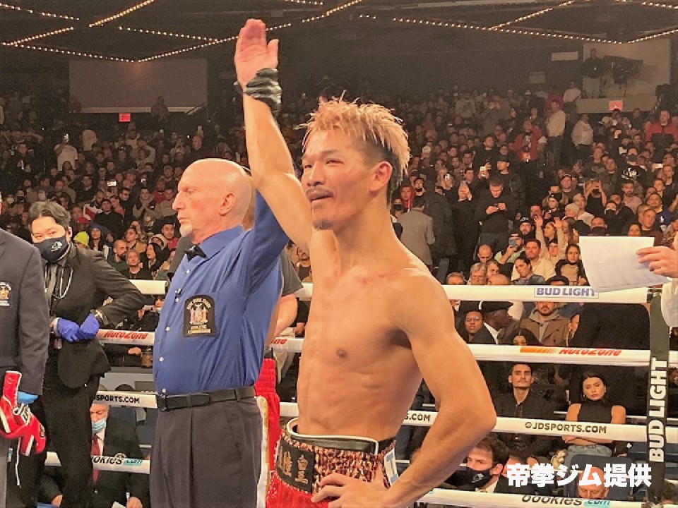 「(ポイント差について)比較的、こちらのパンチ、ジャブなど採ってもらえていないんだなと感じました。ダウンを3回獲って、思っていたほどポイントは開いてないんだと感じました。でもそういう部分も含めてこれも海外ですし、試合を進めながらも自分の手数が少ないのは感じていました。かといって相手が待ってるのが分かっているところへ不用意に入っていってポイントを取られるという、スパーリングでも経験しているイヤな流れにしたくなかったっていうのはありました。」