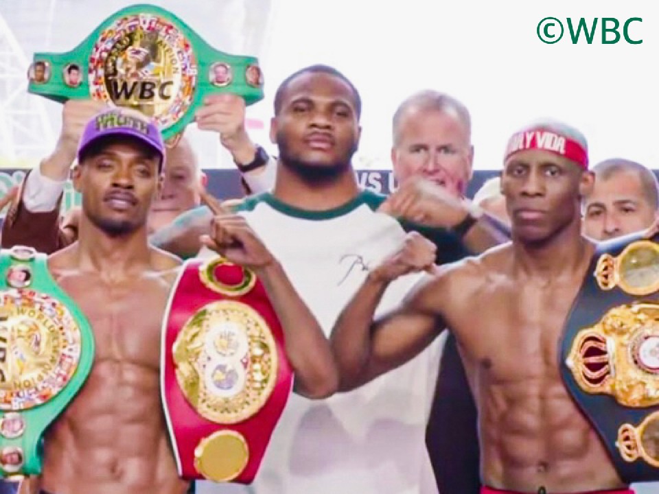 WBC(世界ボクシング評議会)&IBF(国際ボクシング連盟)ウェルター級2冠王者エロール・スペンスJr.(32=米)と、WBA(世界ボクシング協会)同級スーパー王者ヨルデニス・ウガス(35=キューバ)が16日(日本時間17日)、米国・テキサス州アーリントンのAT&Tスタジアムで3冠王座統一戦を行う。その前日計量を15日、同会場で行い両選手が対峙した。