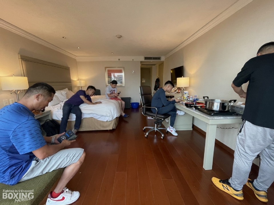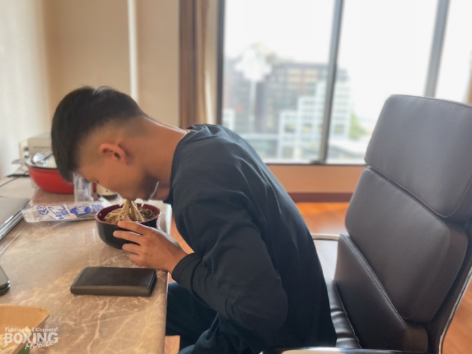 この日、午前中のロードワークで汗を流した京口は、日本から持ち込んだ乾麺の蕎麦を堪能。順調に調整を続けている。
