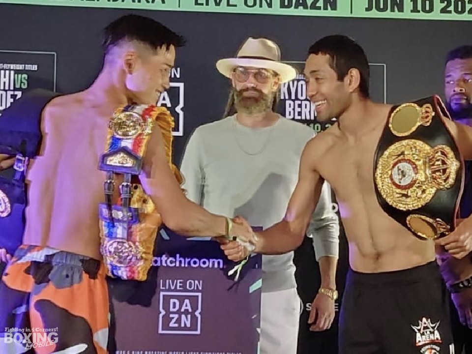 WBA世界ライトフライ級王座統一戦の前日計量が9日、メキシコ・グアダラハラで行われた。日本時間の11日(土)午前9時ゴング予定の一戦は、スーパーチャンピオン京口紘人(28=ワタナベ)が、レギュラーチャンピオンのエステバン・ベルムデス(26=メキシコ)の地元に乗り込んで行われる。