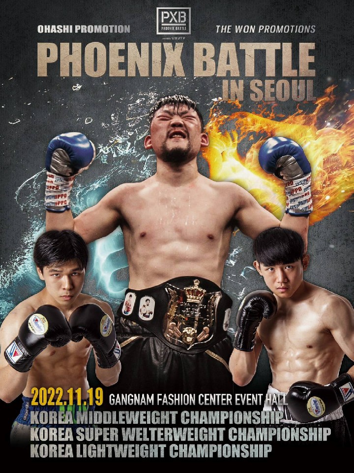 大橋ボクシングジムは16日、「大橋プロモーション」と韓国の「The Won Promotions」が「フェニックスバトル・ソウル大会」を共同主催することを発表した。11月19日(土)にカンナムソムユセンターで行われる。この大会では、韓国ミドル級タイトルマッチ 、韓国スーパーウェルター級タイトルマッチ 、韓国ライト級タイトルマッチ他、10回戦3試合と4回戦12試合を予定している。