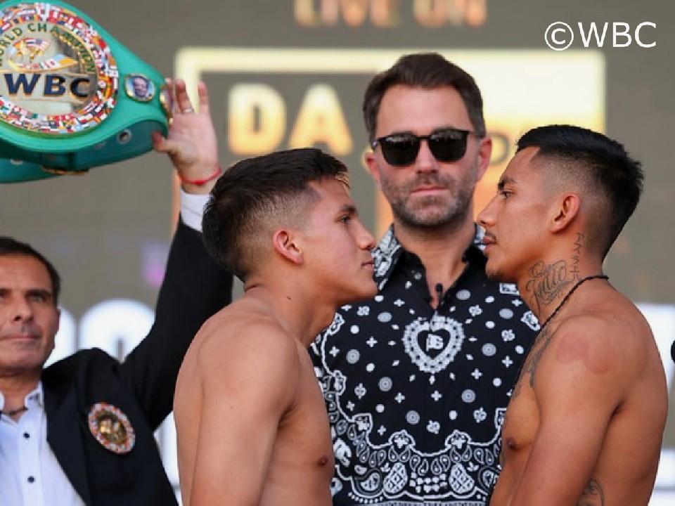 WBC世界スーパーフライ級タイトル戦の前日計量が、日本時間の17日、ラスベガスの野外特設会場で行われた。