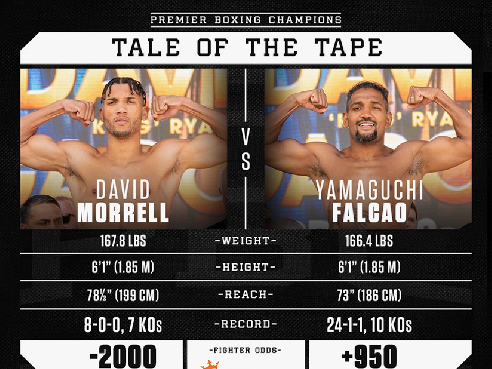WBA(世界ボクシング協会)スーパーミドル級正規王者デビッド・モレル(25=キューバ)とWBA同級6位ヤマグチ・ファルカン(35=ブラジル)の前日計量が21日(日本時間23日)、米国・ラスベガスの「T-モバイル・アリーナ」で行われ、両選手がビッグマッチの秤で対峙した。試合は、ジャーボンテ・デイビス(28=米)とライアン・ガルシア(24=米)の試合の前に行われる。