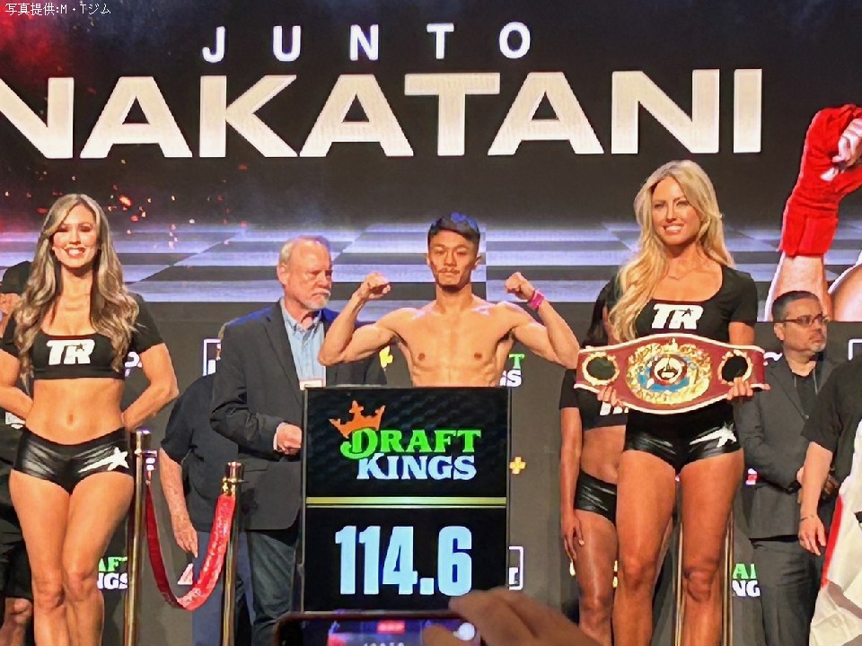 スーパーフライ級リミット52.1kgを中谷、モロニーと共に200g少ない51.9kgでクリア。井上尚弥(30=大橋)に続くネクスト・モンスターと海外で話題にあがる中谷潤人が、いよいよ2階級制覇のリングに立つ。