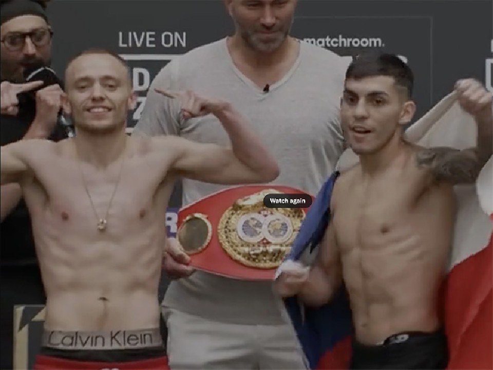 IBF(国際ボクシング連盟)フライ級王者サニー・エドワーズ(27=英)が10日(日本時間11日)、英国・ウィンブリーのウィンブリー・アリーナで4度目の防衛戦を決行する。その前日計量が9日に行われ、IBF同級7位の挑戦者アンドレス・カンポス(26=チリ)と秤に臨んだ。