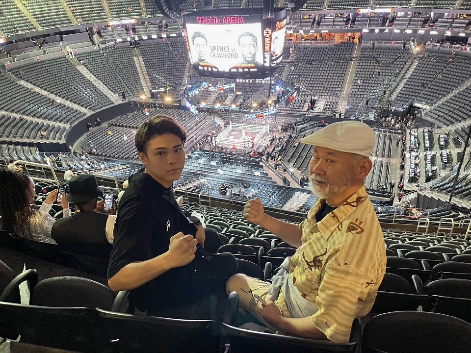 この歴史的瞬間を生観戦したWBO-APウェルター級王者の佐々木尽(21=八王子中屋)は、「ウェルター級4団体統一戦『スペンスVSクロフォード」を見てきました。ウェルター級の世界トップは、目指し甲斐があるなって改めて思いました。自分が日本人ウェルター級(代表)として、世界に殴り込みをかけたいので、是非日本の皆さん、自分が目指すストーリーの応援をよろしくお願い致します。今日は世界の素晴らしい試合と空気感を体験できて、素晴らしいキャリアになりました。まずは左肩を治します。」とコメントを寄せた。