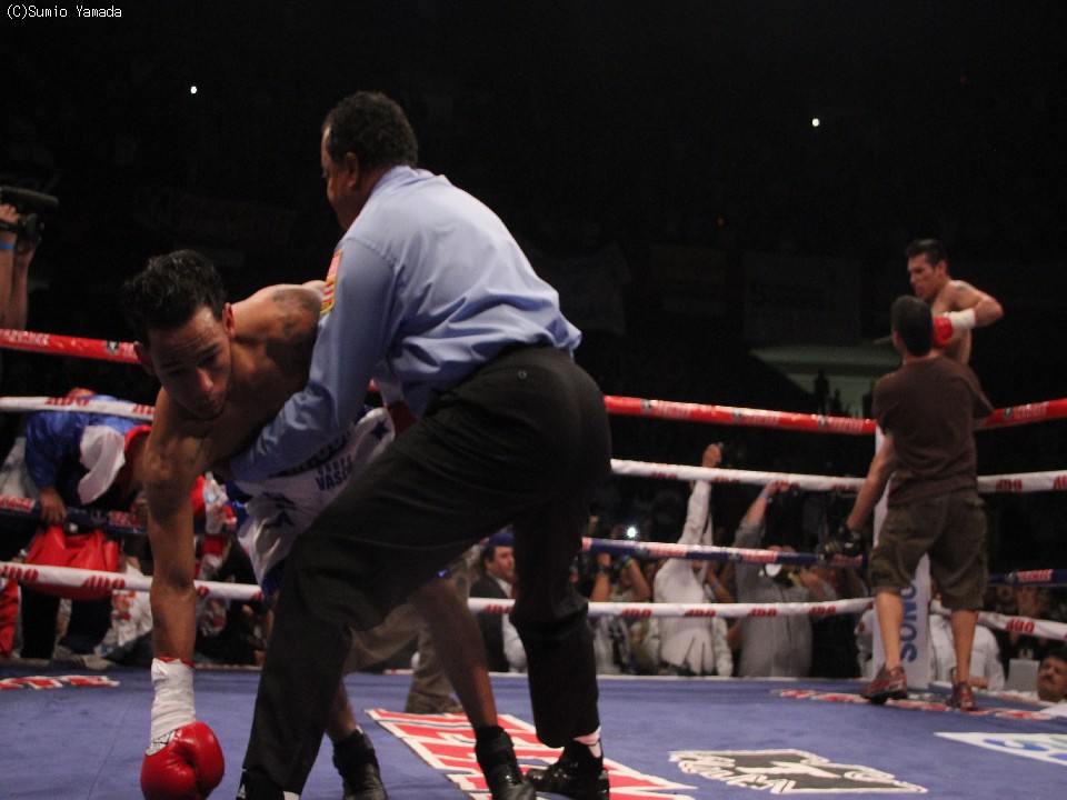 雪辱に燃えるコンセプションは試合開始と同時に積極的に攻めて出たが、マルケスは落ち着いてさばいた。ラウンド半ば、サウスポーのマルケスが右フックから左ストレートをヒットするとコンセプションは後方に弾けるようにダウン。立ち上がったがダメージは明白だった。マルケスが右フックを決めると2度目のダウン。さらに左フックを当てると3度目のダウンで万事休す。初戦のような激闘を期待したファンは拍子抜けした感もあるが、文句なしの決着といえよう。