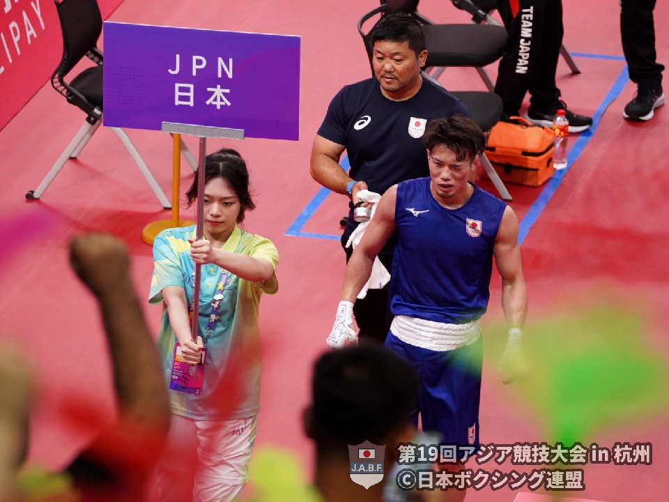 中国・杭州で開催されてきた第19回アジア大会・ボクシング競技の最終日(10月5日)。男子57kg級の決勝戦に臨んだ原田周大(専修大学)は、アブドゥマリク・ハロコフ(ウズベキスタン)の豪快なパンチに苦しみ、4度目のスタンディングカウントを取られた際、レフェリーから試合を止められ、同時にタオルも投入された(2回RSC負け)。原田は銀メダルに決定。今大会における日本ボクシング界のメダル獲得は、金1・銀1・銅1となった。