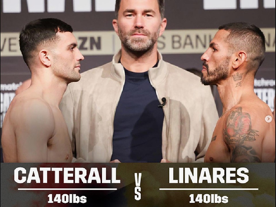 英国・リバプールのM&Sバンク・アリーナで21日(日本時間22日)、元世界3階級制覇王者のホルヘ・リナレス(38=ベネズエラ)が、ジャック・カテラル(30=英)の保持するWBA(世界ボクシング協会)インターコンチネンタル・スーパーライト級王座に挑戦する。その前日計量が行われ、両雄が並び立った。