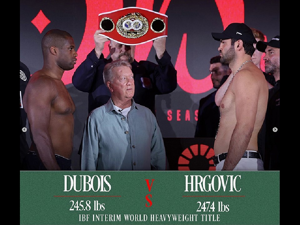 IBFヘビー級1位のフィリップ・フルコビッチ(31=クロアチア)と元WBA世界ヘビー級正規王者のダニエル・デュボア(26=英)の試合は、IBF世界暫定王座決定戦に繰り上がった。