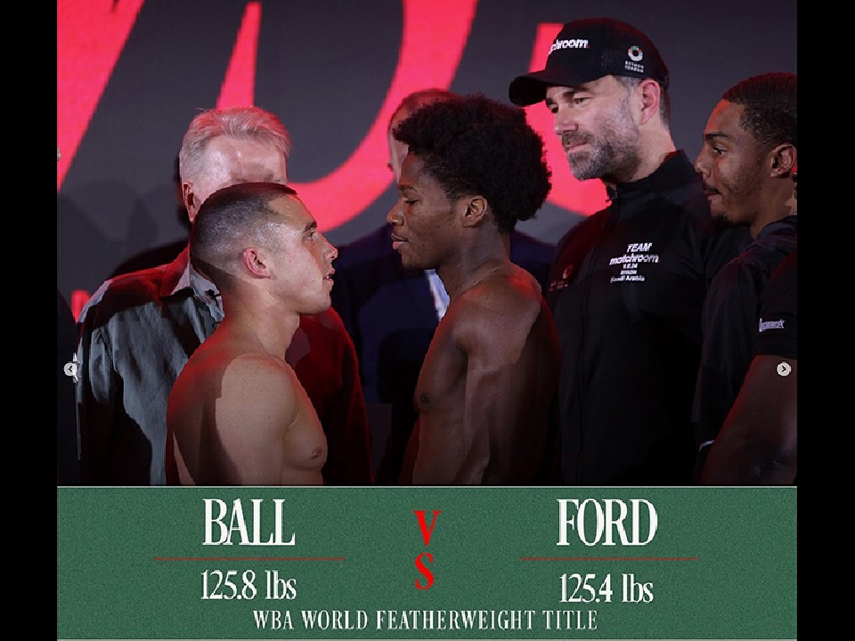フェザー級リミット57.1kgを、王者フォードは300gアンダーの56.8kg、挑戦者ボールは、リミットには100g少ない57.0kgで秤を降りた。