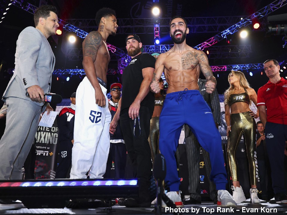 ライト級リミット61.2kgを、王者スティーブンソンは、400gアンダーの60.8kgでクリア。挑戦者ハルチュニャンは、100g少ない61.1kgで秤を降りた。