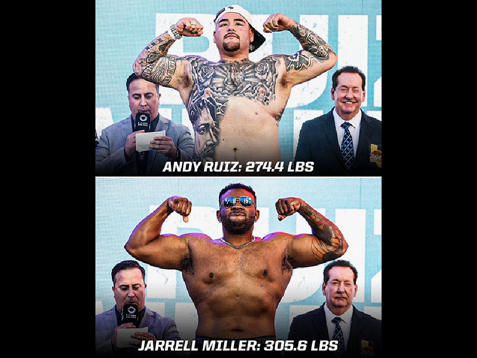 アンダーカードには世界ヘビー級線も組まれた。元WBAスーパー・IBF・WBO世界ヘビー級王者アンディ・ルイス(34=米)が138.6kgをマーク。対するジャレル・ミラー(36=米)は138.6kgだった。