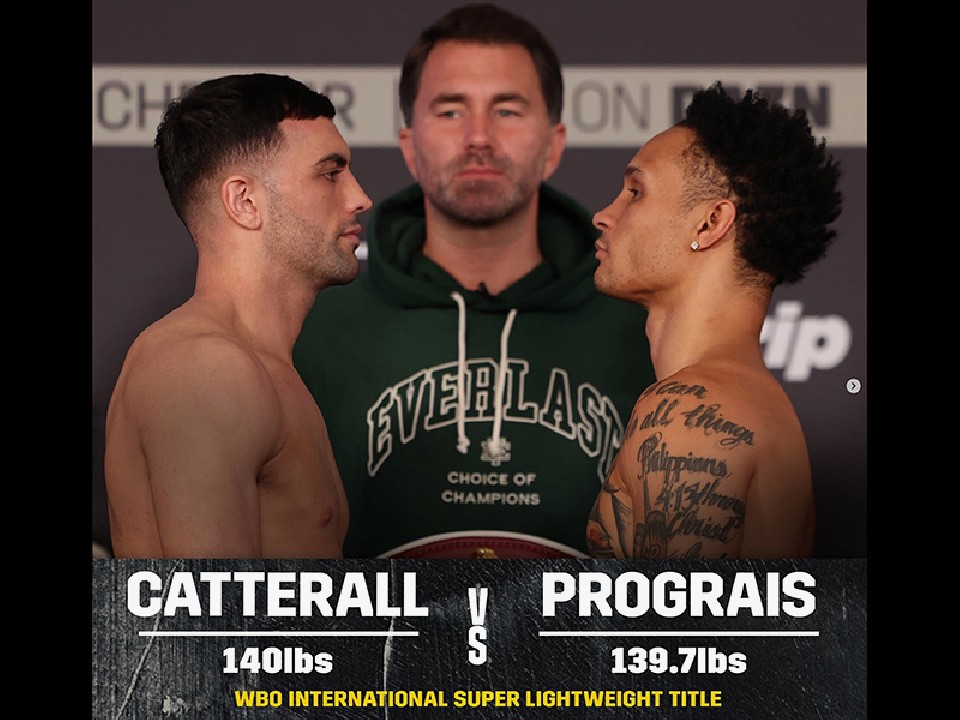 WBCとWBOの世界スーパーライト級2位のジャック・カテラル(31=英)と、元WBA・WBC世界同級王者のレジス・プログレイス(35=米)の両者が英国時間の25日、WBOインターナショナル同級王座決定戦の前日計量に臨んだ。試合は、マンチェスターで行われる。