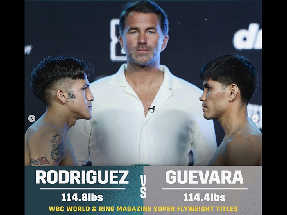 スーパーフライ級リミット52.1kgを、正規王者ロドリゲスは100g少ない52.0kgでパス。暫定王者ゲバラは200g残して51.9kgでクリアした。