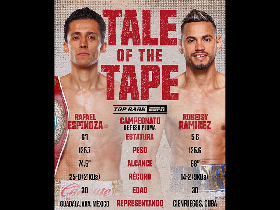 昨年12月に行われた初対決は、当時チャンピオンだったラミレスに有利の声が多かったが、エスピノサが5回にダウンを奪われながらも、サイズを活かして攻め続け、最終回にダウンを奪い返して、2-0の逆転判定勝利を挙げ、下馬評を覆して新チャンピオンに輝いた。