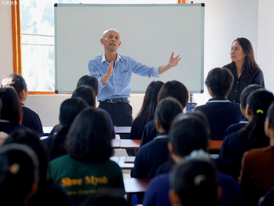 日本語学校を訪問した田中氏