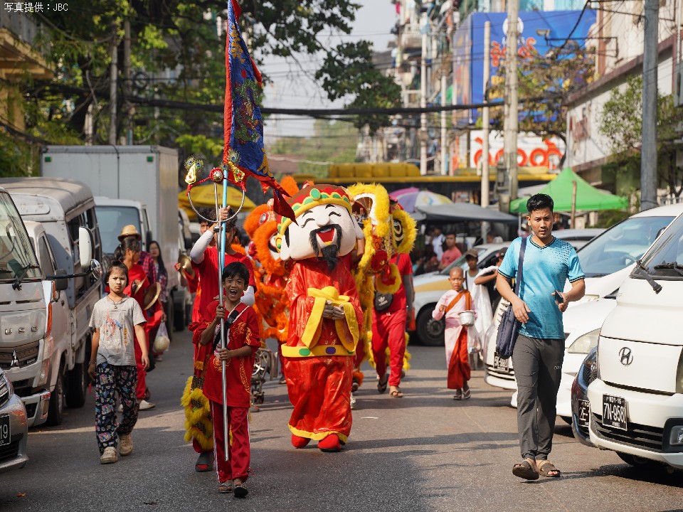 ヤンゴン市内は春節(中国の旧正月)を祝っている。