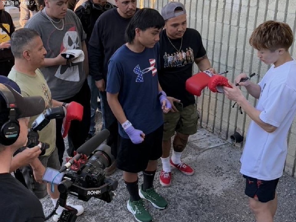 トレーニングに使用しているトップランクジムの外には、サインを求めるファンで長蛇の列ができたが、許された時間の中で、ファンが持参したグローブにサインするなど、ファンサービスにも快く応じた。