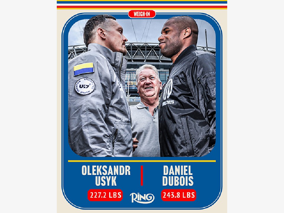 WBAスーパー・WBC・WBO世界ヘビー級統一王者のオレクサンドル・ウシク(38=ウクライナ)と、IBF世界同級王者のダニエル・デュボア(27=イギリス)による4団体王座統一戦が、日本時間の7月20日、イギリス・ロンドンのウェンブリー・スタジアムで開催される。2023年8月の初対決以来となるリマッチは、試合前日の計量が現地で行われ、両選手はリング外でも火花を散らした。