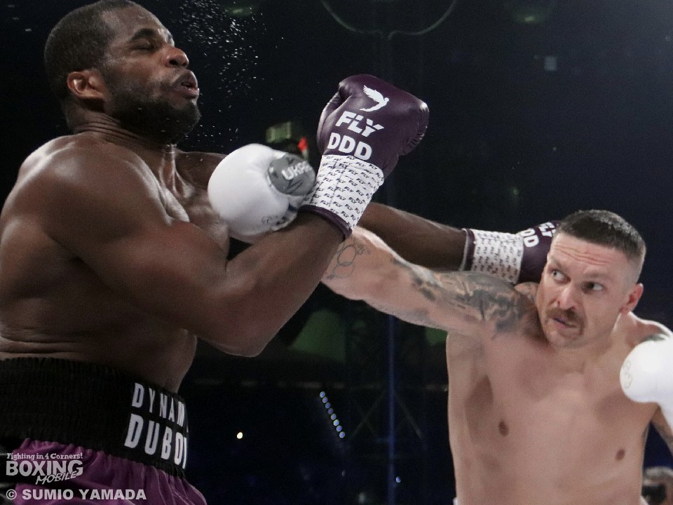 初対決は、2023年8月にポーランドで開催された。白熱した展開の中で物議を醸したのが5回だった。デュボアの放ったボディブローがウシクのベルトライン付近を直撃すると、ウシクは悶絶。レフェリーはこの一撃をローブローと判定し、ウシクには約4分間のインターバルが与えられた。その後、試合はウシクがペースを握り、第9ラウンドにTKO勝ちを収めた。