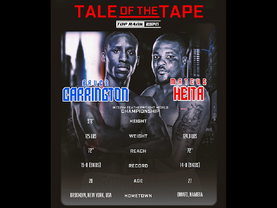対するハイタは、ナミビア出身のサウスポーで、高いフィジカル能力と一撃必倒のKOパワーを武器とするファイター。両者とも無敗のレコードを持ち、スピードのカーリントンとパワーのハイタという、対照的なスタイルが激突する注目の一戦となる。