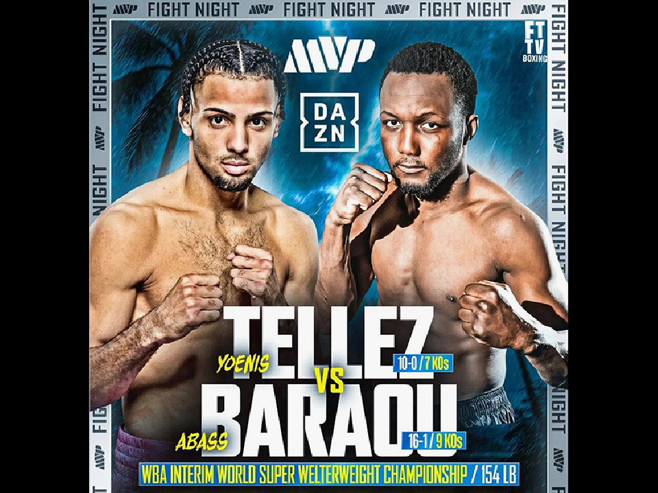 テレスはアマチュア102勝7敗を誇り、亡命先のロシアで2020年6月にプロデビュー、2回TKOで勝利した。その後もキャリアを進め今年3月、元スーパーウェルター級2冠統一王者のジュリアン・ウィリアムズを12回判定で破り、WBA暫定スーパーウェルター級王座獲得。今回が初の防衛戦となる。