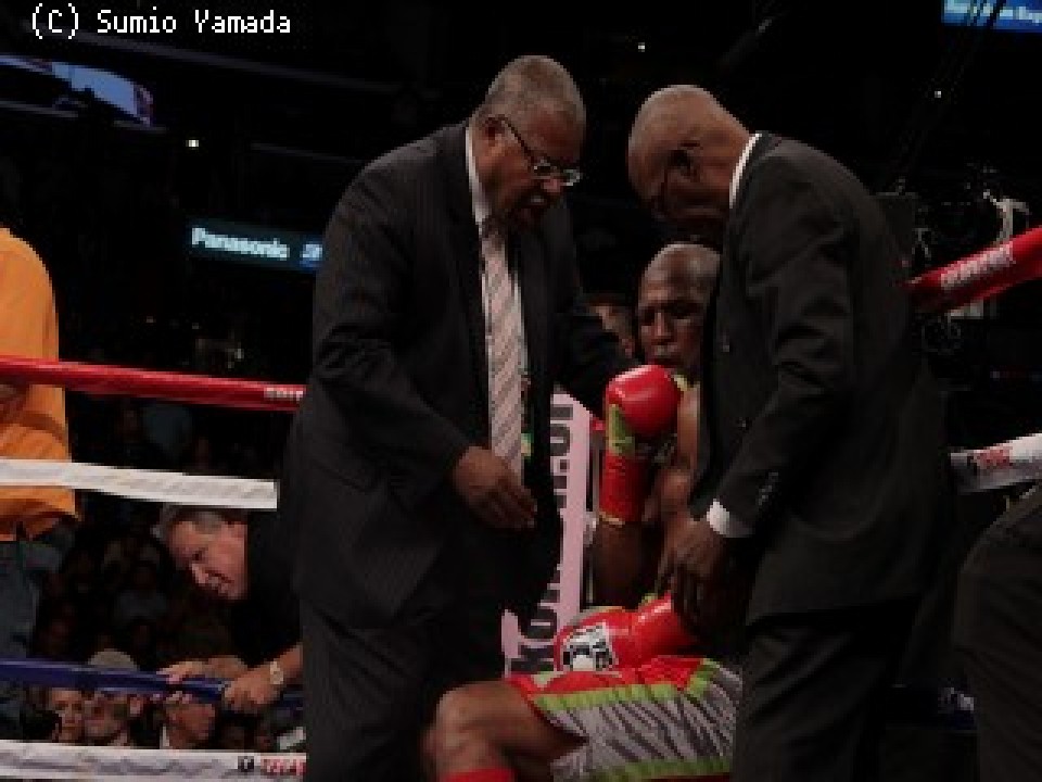 この両者は昨年10月、ホプキンスの初防衛戦として米国ロサンゼルスのステープルズ・センターで拳を交えたが、2回にアクシデントが発生し、不可解かつ不完全燃焼の結末を迎えた。ドーソンに抱え上げられてエプロンに落下したホプキンスが左肩を負傷、続行不可能となったのだ。