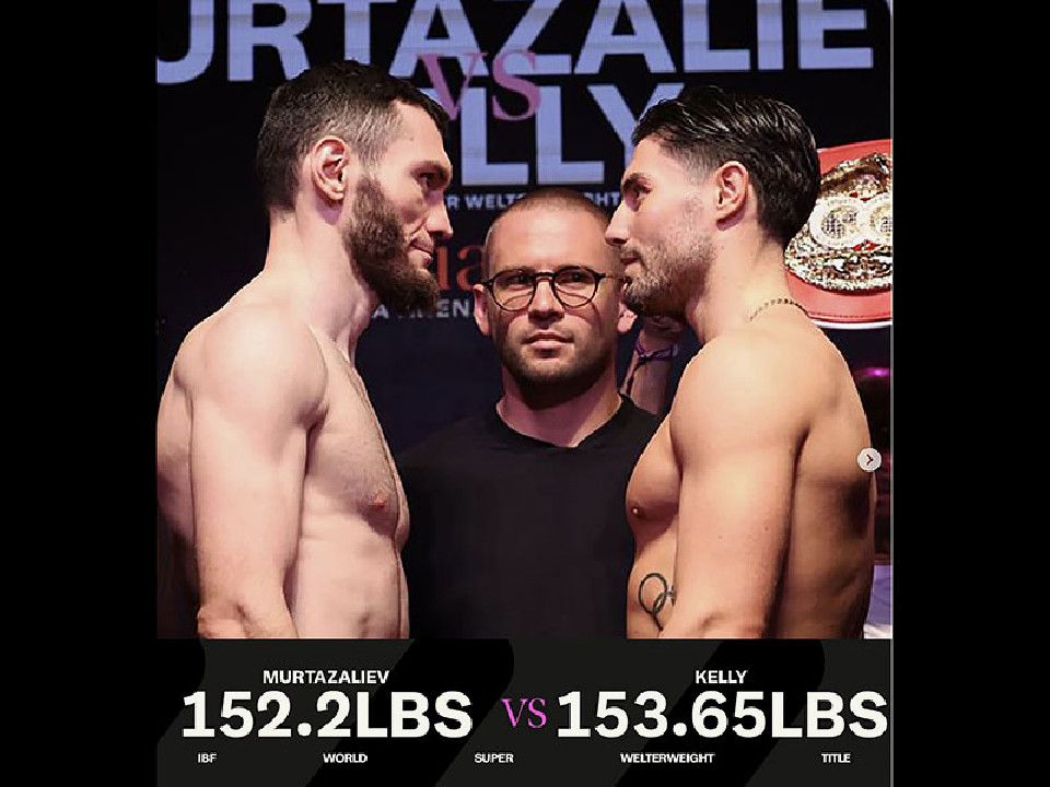 スーパーエルター級リミット69.8kgを王者ムルタザリエフは、800g軽い69.0kgでクリア。挑戦者ケリーは、200gアンダーの69.6kgでパスした。