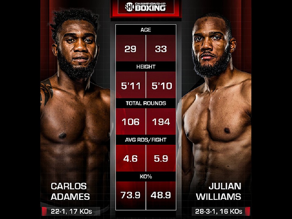WBC世界ミドル級正規王者カルロス・アダメス(31=米)が防衛戦を決行する。日本時間21日、米国・フロリダ州オーランドで、WBC世界同級3位の挑戦者オースティン・ウィリアムズ(29=米)と前日計量の秤に臨んだ。