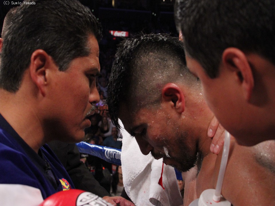 そんな展開のなか9回が終了するとオルティスが棄権を申し出て突然の幕引きとなった。オルティスの顎に異常があったらしい。9回までの採点では86対85、88対83、87対84の3-0でリードしていただけにオルティスにとっては悔しい敗戦となった。