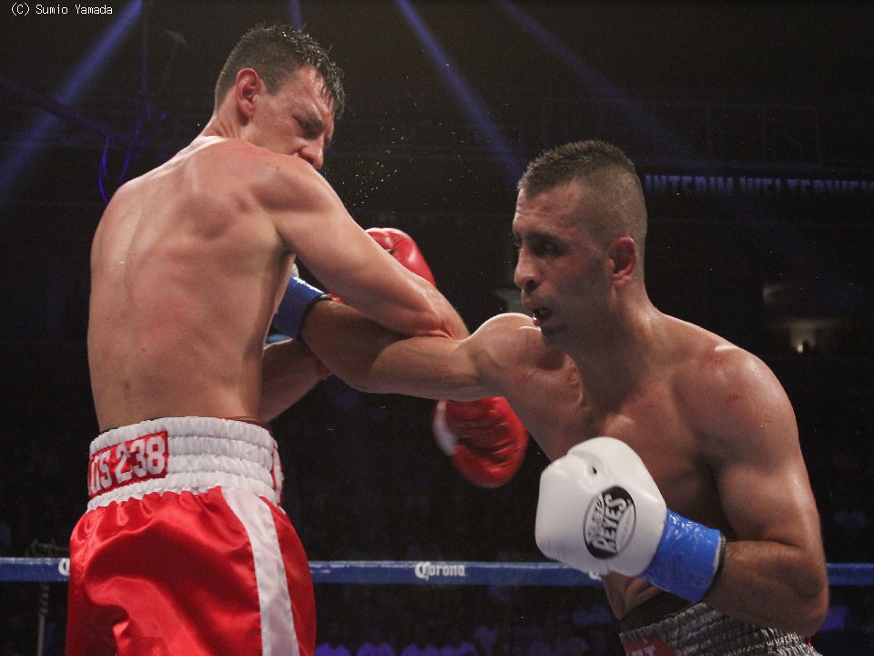 フェザー級、スーパーフェザー級、ライト級の3階級を制してきたゲレロだが、ウェルター級での試合は今回が初めてのこと。しかし、サウスポーから繰り出すスピードある右ジャブと手数の多さでアイデンをコントロール。