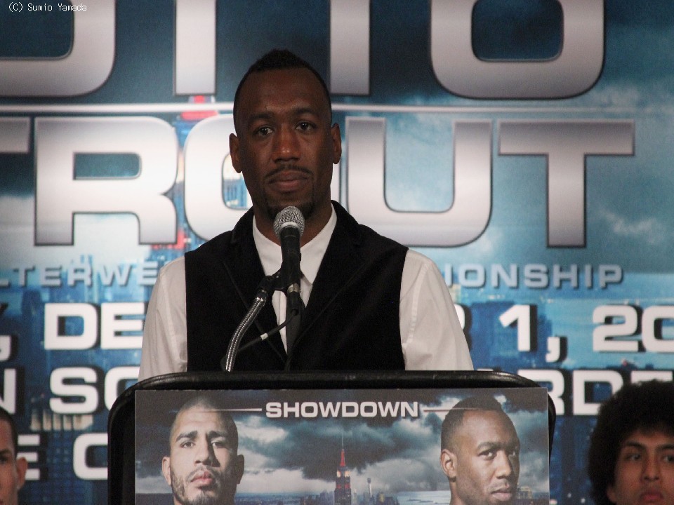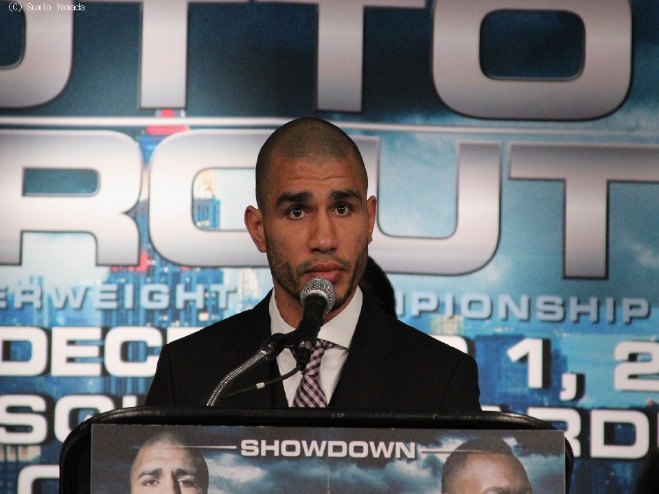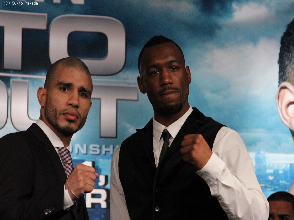 今週末12月1日(日本時間2日)に米国ニューヨークのマジソン・スクエア・ガーデン(MSG)で拳を交えるWBA世界スーパーウェルター級王者オースティン・トラウト(米)と、挑戦者の元3階級制覇王者ミゲール・コット(プエルトリコ)が28日、揃って会見に臨んだ。