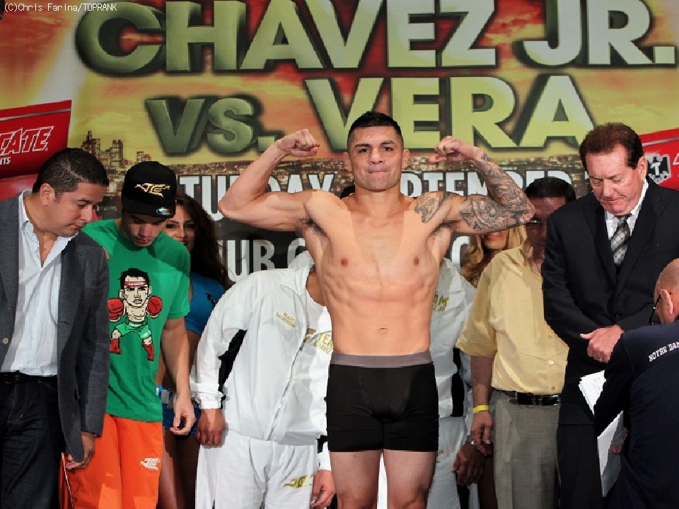 この試合は当初163ポンド契約だったが、チャベス側の希望で165ポンド、168ポンド、そして173ポンドと徐々に上がっていった。27日、ロサンゼルスのビルトモア・ホテルで行われた計量ではチャベスが172.4ポンド(約78.1キロ)、ベラは171.2ポンド(約77.6キロ)だった。