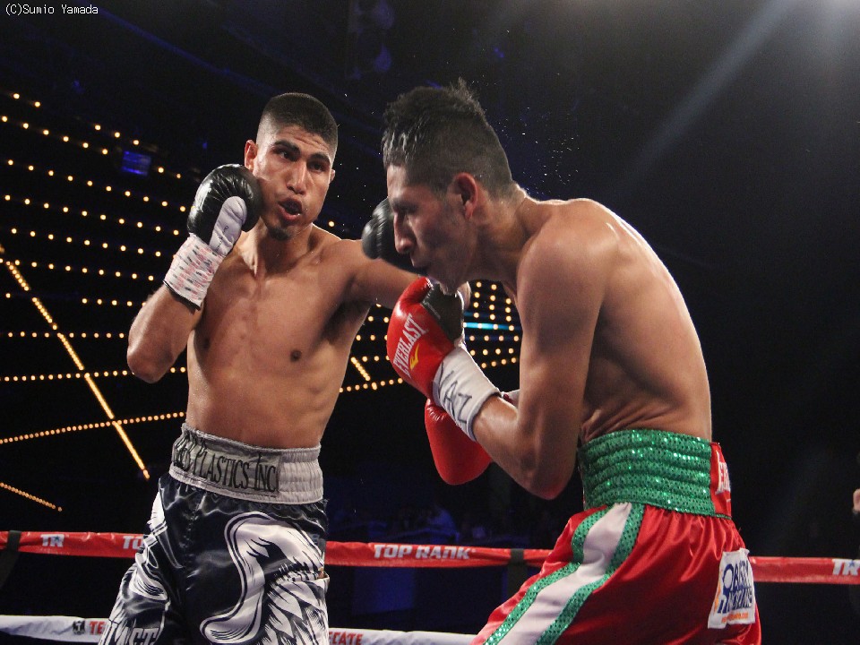 上々のスタートを切ったガルシアだったが、2回には冷やりとするシーンがあった。ブルゴスの左フックを浴びて膝が揺れたのだ。昨年11月の戴冠試合、ローマン・マルチネス(プエルトリコ)戦でも2回にダウンを喫しているだけに、その再現かと思われたが踏ん張った。