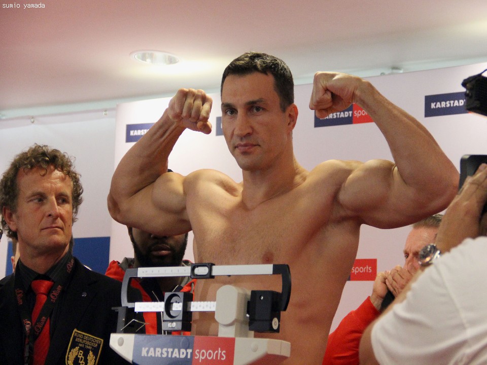 WBA、IBF、WBO3団体統一世界ヘビー級王者ウラジミール・クリチコ(38=ウクライナ)対WBO1位アレックス・リーパイ(34=サモア/豪)のタイトルマッチ12回戦は26日(日本時間27日)、ドイツのオーバーハウゼンで行われる。25日には両選手揃ってスケールに載った。