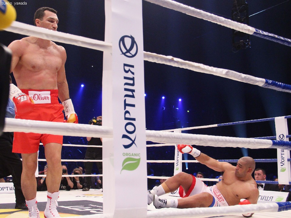 王者の圧勝だった。いつものようにクリチコは長い左ジャブを繰り出して挑戦者を突き放し、決め手の右ストレートに繋げる機会をうかがう。初回中盤過ぎ、リーパイがバランスを崩しかけたところにクリチコの左が軽く入り、挑戦者は尻餅をついてしまった。エディ・コットン・レフェリー(米)は一瞬躊躇したがダウンを宣告、挑戦者に向けて規定の8カウントを数えた。2回以降もクリチコがロングレンジを保ちながら一方的に試合をコントロールしていった。