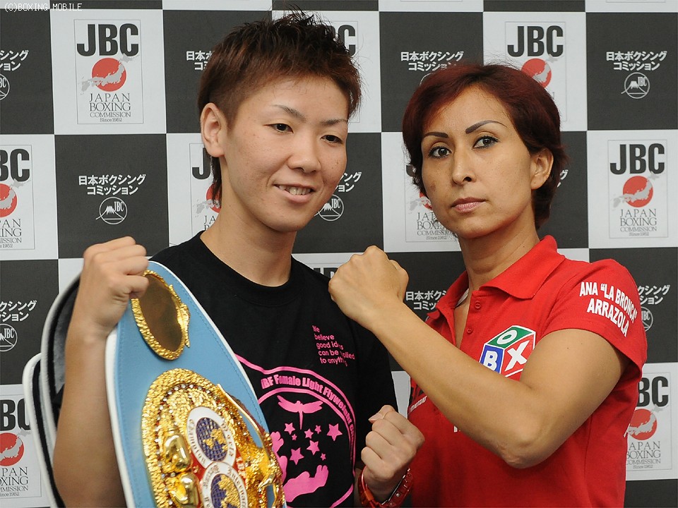 足立総合スポーツセンターで開催される女子ボクシング、ダブル世界戦の調印式と前日計量が1日、都内のJBC事務局で行われた。メインのリングに登場するのは、2度目の防衛戦に臨むIBF女子世界ライトフライ級王者、柴田直子(ワールドスポーツ)と指名挑戦者でランキング1位のアナ・アラゾーラ(メキシコ)。