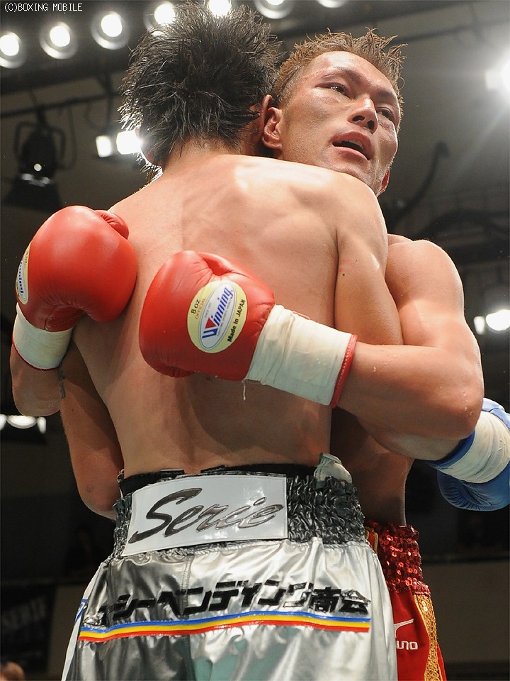 しかし、両者ともパンチが大きく、赤穂がバッティングで苦しめば、芹江もローブローでかがみこむなど、両者の闘志とは裏腹に試合は度々中断する波乱の展開が続いた。後半に入ってもクリンチが多く、なかなか噛み合うことはなかったが、それでも両者の熱いファイトに場内は大興奮。応援合戦が最後まで続いた。バッティングに苦しんだ赤穂だが、序盤と終盤の有効打で上回り、最大4ポイント差の3-0で判定勝ち。力を出し切った両者は抱擁し、互いの健闘を称えた。