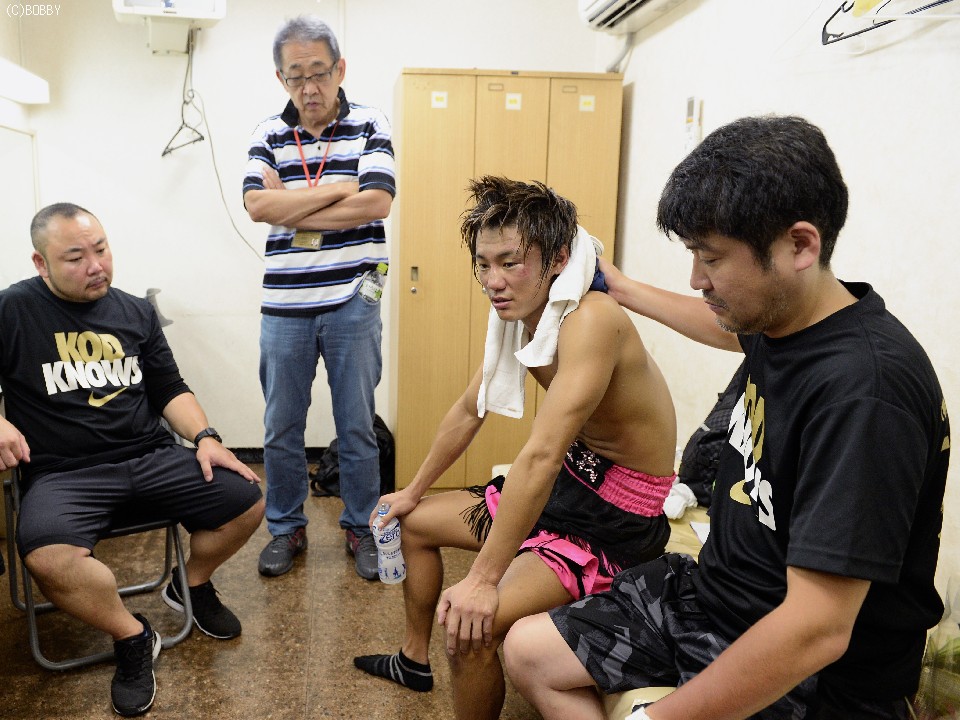 控室に戻った益田は、「冨山選手は右フックが強かった。ジャブで相手の表情が変わったので、このまま出していこうと思った。途中、ボディが弱いと思ったので狙っていきました。ここまでの決着は想像してませんでした」と試合を振り返った。