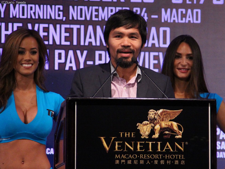 WBO世界ウェルター級王者マニー・パッキャオ(35=比)は11月23日(米国時間22日)、中国特別行政区マカオで1階級下のWBO世界スーパーライト級王者クリス・アルジェリ(30=米)を相手に初防衛戦に臨む。この試合のオッズが12対1でパッキャオ有利と出ている。